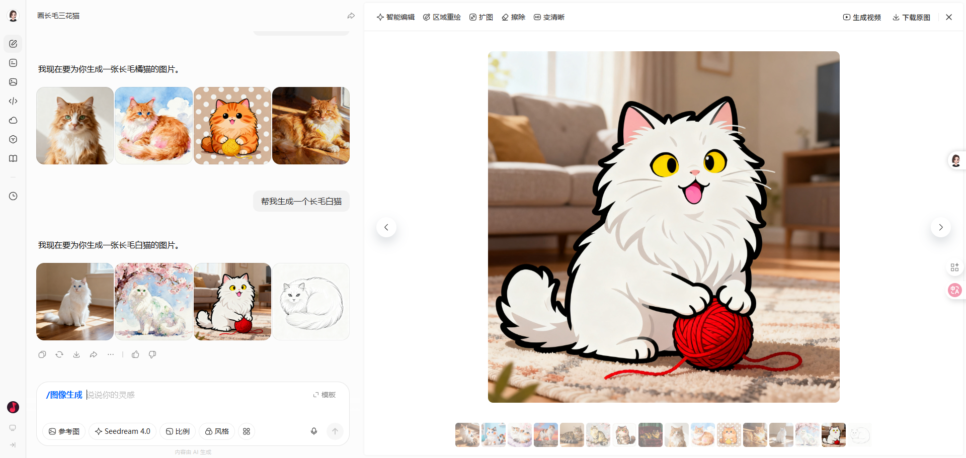 实时显示当前对话里豆包AI生成的每一张图片(包括你滚动上去的历史消息) -