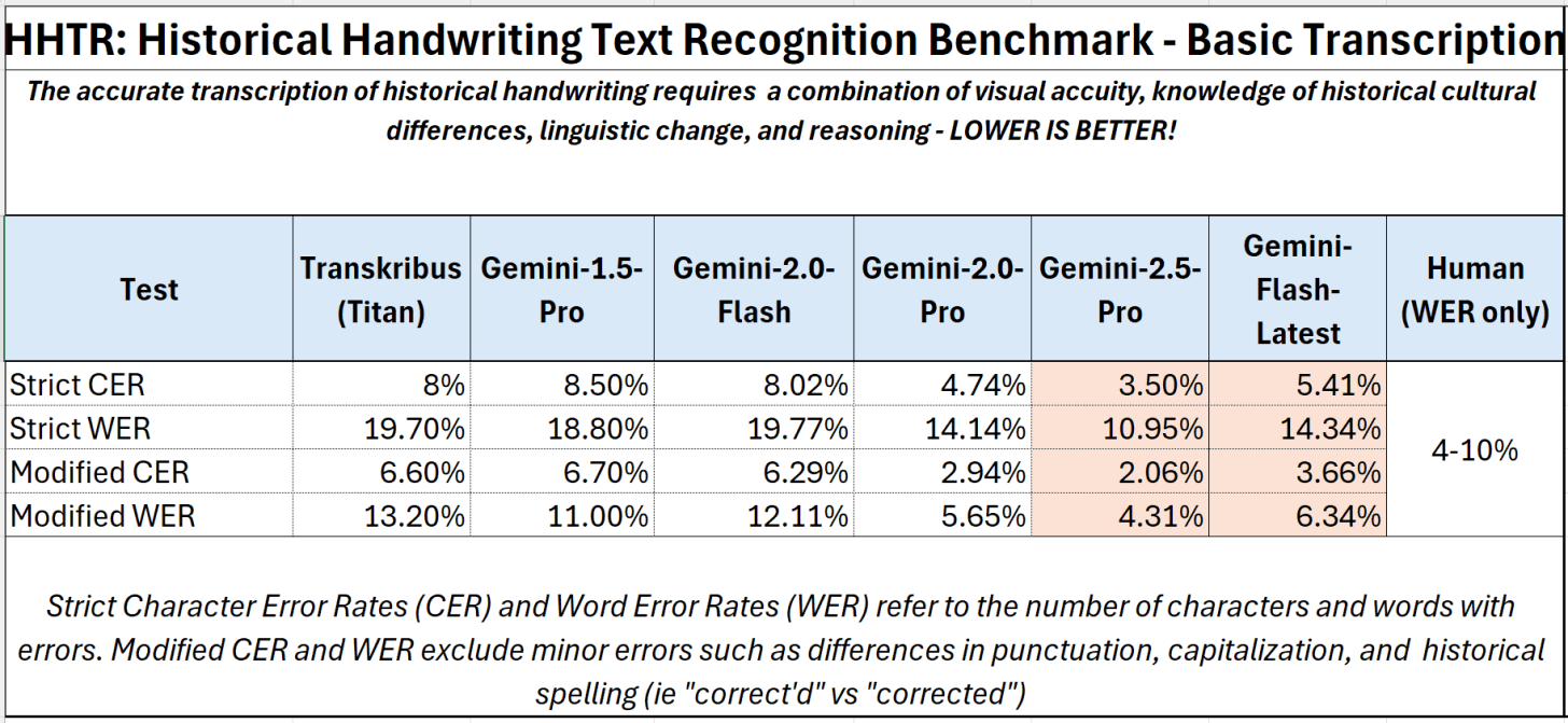 A: 这意味着「几乎可以直接用于学术研究」。专业转录服务通常承诺1%的词错误率(WER),但前提是文档清晰易读。对于历史档案这种高难度材料,人类专家的实际WER在4-10%之间。新模型的表现已经进入顶尖人类专家区间,而且速度是人类的数千倍。