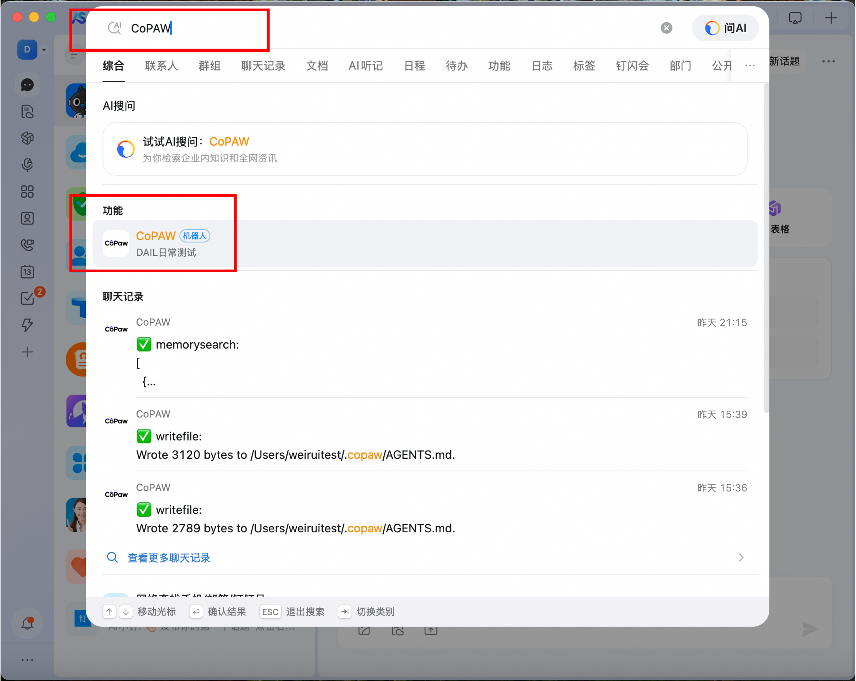 Because of this, you can ask CoPaw on Monday to help you outline tasks for the week. Then, on Wednesday, you can ask, “What’s the status of the tasks we planned on Monday?” CoPaw can use itsmemory_searchfunction to semantically search through its daily log files, “remember” the context, and give you a meaningful update. It’s not just reacting; it’s recalling.